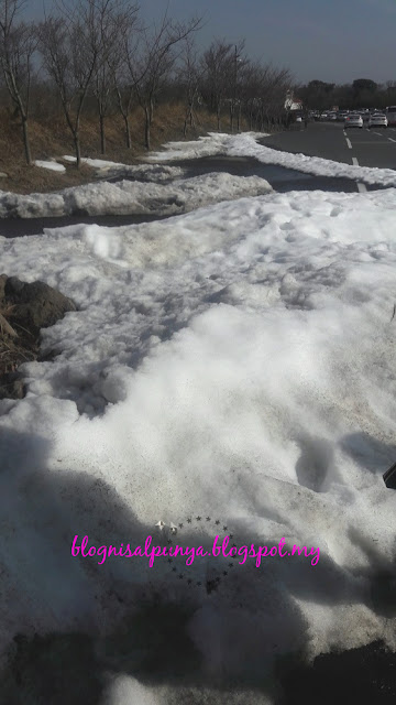 Salji masih menebal sewaktu kami sampai ke Ecoland. Nasib baik pakai winter boot. Boleh kuis-kuis salji dengan kaki. Ecoland ni ada kawasan parkir yang luas tapi ramai jugak yang aku nampak datang naik bas.