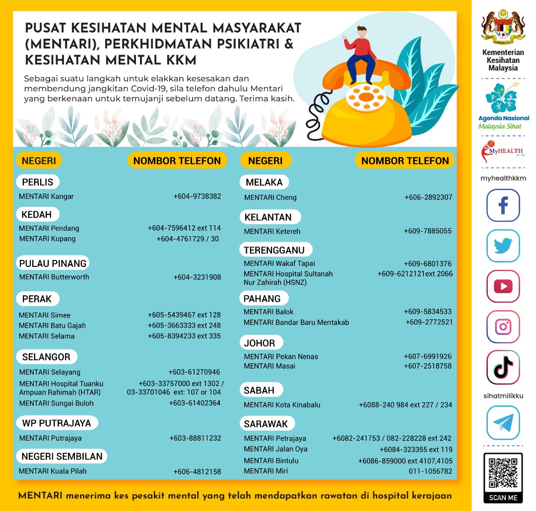 Boleh cuba hubungi Mentari terdekat dengan korang. Kali pertama datang, diorang akan mintak buat test penilaian tahap kesihatan mental. Jawab dengan jujur. Aku ada kawan yang dapatkan rawatan di sini. Awal-awal memang perit sikit, kena makan ubat dan kena datang sesi rawatan. Paling penting bagi aku adalah kau sendiri kena tolong diri kau. Aku tak pergi Mentari, tapi ada doktor refer aku pada hospital kerajaan sebab aku anxiety teruk dan turun berat badan secara mendadak.